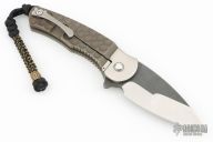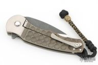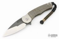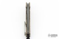 This Stealth flipper from DSK Tactical Knives features a satin finished blade with dark tumbled flats, has flipper. The handle has a milled titanium frame with an anodized and tumbled finish. The pocket clip is also titanium and positioned for tip up carry. Blade is centered when closed, flips well with no wrist action needed, and locks up with no play. Comes with a zippered case. Has a few light scratches, otherwise excellent condition.