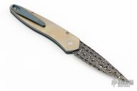 This Newport Titanium Custom by Pro-Tech Knives features a Vegas Forge carbon Reptilian Damascus spear point blade. The handle has an anodized and satin finished titanium frame with abalone inlaid push button, milled and anodized titanium tip up clip. Comes with original box and papers. #51/60. New from maker at the 2024 Blade Show!