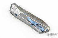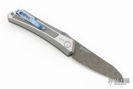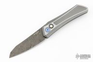This Custom Oligarch by Pro-Tech Knives features a Chad Nichols Virus Damascus pattern wharncliffe shaped blade. The handle has a two-tone 17-4 stainless frame with black lip pearl inlay in push button, blue titanium deep carry tip up clip. Comes with original box and papers. S/N will vary from the photos. 100 piece run. New from maker at the 2024 Blade Show!