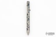 "I am a folder maker. While there will always be the occasional fixed blade, folders are my passion. The steels I enjoy working with include CPM154, ATS-34, 440C, S30V, and Stainless Damascus from Devin Thomas. All of the metal parts on my knives that can be Titanium are Titanium including frames, liners, thumbstuds, bolsters, clips and spacers. Pretty much everything except for the blade. I often anodize a substantial portion of my titanium, and can get a deep green that few makers succeed at. As far as handle materials go, I mostly use Carbon fiber, G10, or Micarta. I use large bronze pivot bushings in all of my folders, and either Nylatron or Bronze washers. All of my parts are made in-house except the screws. I have an old Bridgeport Mill, an older Logan Lathe (1943), a Hardcore grinder, and various other tools, lots of them made by myself. I also do all of my own Heat treating in an EvenHeat Oven." My knives have won several major awards, including Best Tactical Folder at the Blade Show 2011.