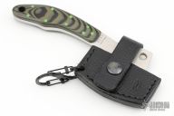 This Small Hatchet by Mickey Yurco features a satin finish blade with .172" blade stock, 2.060" blade depth, 2.375" blade length, full tang construction. The handle has green/black G-10 scales. Comes with a leather sheath with S-biner. New from maker at the 2024 Blade Show. #4612