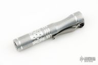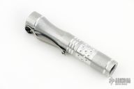 This Hoku flashlight from Dawson Machine Craft features an aluminum body. 519A 4500k emitter.   Reflector optic.  Takes a single 10440 battery.  Titanium Pocket Clip. This piece comes with a custom pouch and original info card, dated 06/07/24. DOES NOT INCLUDE BATTERY. New from maker.