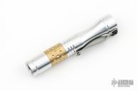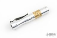 This Hoku flashlight from Dawson Machine Craft features an aluminum body.  Brass Spacer. 519A 4500k emitter.   Reflector optic.  Takes a single 10440 battery.  Titanium Pocket Clip. This piece comes with a custom pouch and original info card, dated 06/07/24. DOES NOT INCLUDE BATTERY. New from maker.