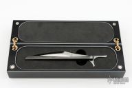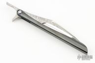 This Razonet features a Damasteel blade with a false top edge.  The handle features a polished zirconium integral handle.  This knife has no blade locking system, there is a magnetic detent that integrates a neodymium magnet in the channel handle. The magnet never touches the blade either in the open or closed position, all this thanks to tight tolerances and specific geometries milled inside the channel. Includes a custom solid milled display case.  Excellent Condition.