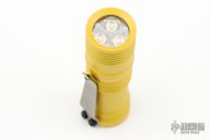 This Ion flashlight from Dawson Machine Craft features an aluminum body. 519A 4500K triple emitter. Carclo Narrow Spot optic. Flat sapphire watch "glass" window. H17fx Driver.  Uses a single 18350 battery. Battery is not included.  This piece comes with a custom pouch and COA, dated 06/07/24.  New from maker.
