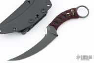 This Mako from Bastinelli Knives features a black tumble finished upswept blade with swedge, .155" blade stock and .417" blade depth, full tang construction. The handle has a red cord wrap over non-slip insert and menuki with a one inch finger hole on pommel. Includes kydex sheath with TekLok and a padded zippered case. New from maker!
