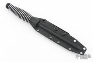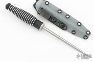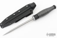 This Ventilation Pick by Bastinelli Knives features a satin finished and fluted 5.25" spike that is .275" in diameter. The handle is tumbled and fluted aluminum with titanium pommel. Comes with a kydex sheath with belt clip, and zipper case.  New from maker.