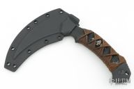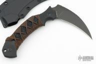 The Grumpy from Bastinelli Creations features a black hawkbill blade with a mortis tang construction.  .121" Blade Stock.  1.43" Blade Depth.  The handle features black g10 scales, custom wrap, and menuki.  Includes a kydex sheath, and zipper case. New from maker!