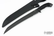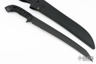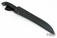 The Separateur from Bastinelli Creations is an absolute beast. It measures 18.9" overall with a 13" 12C27 Sandvik stainless steel blade and black Cerakote finish. The hawkbill shape makes this a formidable foe for brush, wood, and a variety of other camp tasks. The design tapers toward the tip to allow ample penetration power from such a mammoth tool. The ergonomic handle is made from black G10 with a 3D machined pattern for a superb, sure grip. Grasp this handle and you will not only feel the awesome power of this design but also a nice sense of security—it is not going anywhere. The Separateur includes a leather belt sheath.  Comes with original box. New from maker.