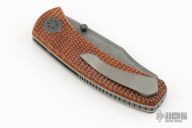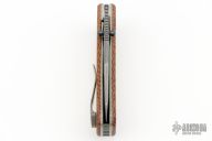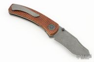 This Model 2 by Rainy Day Knives features a flat ground recurve blade (23 degree edge) with swedge, dual zirconium thumbstuds. The handle has Textolite scales, orange peel finished titanium liners, zirconium pivot, notched backspacer, tip up titanium clip with hidden screws. Nice detent, lockup and blade seating. Comes with zippered case, spanner wrench and COA. New from maker at the 2024 Blade Show.