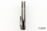 Our goal was to lighten this beast while keeping it amazingly strong, so we 3D-machined it inside and out. This is our first button lock flipper! (And what a challenge it was to pull off!) And finally, we added a little “bling” by anodizing the thumb studs, pocket clip, and backspacer either Bronze or Blue – very subtle and muted colors that set off the look of the knife in a way we haven’t tried before!