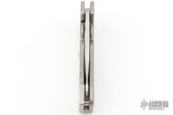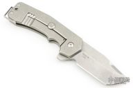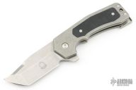 This GMT Rhino Mid-Tech by Jon Graham features a stonewashed blade with flipper. The handle has a stonewashed titanium frame with a black G-10 inlay, matching tip up tail clip and a satin finished lockbar stabilizer. Comes with a cloth pouch, green and orange replacement inlays. Rides on bearings, nice detent, lockup and blade seating. Excellent condition.