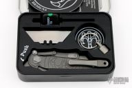 G&G Hawk Shortcut utility knife. Stonewashed Titanium Frame and flipper. Snappy flipping action. Solid lockup, blade seating and centering. Comes with original box and tools to replace the blades.