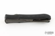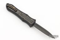 This knife is a Deadlock Model C by Grant and Gavin Hawk. It has a double-edged black blade. The handle has a carbon fiber and black aluminum frame with a tip down spring clip, titanium. The thumb slide on the handle is also titanium and handle has titanium overlays. Comes with a padded zippered case, lip balm and tool. Grant and Gavin Hawk set out to create a double action OTF with no blade play.... They did it, NO blade play.  Comes with drawstring pouch with Hawk logo, tool, chapstick and maker's card. Excellent condition.