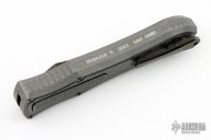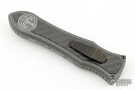 This knife is a Deadlock Model C by Grant and Gavin Hawk. It has a double-edged black blade. The handle has a Carbon Fiber inlays in the tumbled titanium frame with a DLC tip down spring clip, titanium. The thumb slide on the handle is also DLC titanium and handle has a DLC titanium overlay. Grant and Gavin Hawk set out to create a double action OTF with no blade play.... They did it, NO blade play. Comes with tool, cloth pouch. Comes with Dragon Cut Hawk pouch, card, tool and chap stick. Has a couple light scuffs on the clip and button. Excellent condition otherwise.