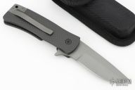 This knife by Les Adams features a bead blasted blade with false top edge and flipper. The handle has carbon fiber scales and backspacer with bead blasted titanium liner and tip up clip. Comes with nylon belt sheath. Rides on bearings, nice detent, lockup and blade seating. Serial Numbers may vary. New from maker!