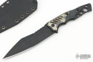 This Intruder by TASKnives features a black cerakote finished spear point blade with a notched thumbrest, .187" blade stock and 1.425" blade depth, full tang construction. The handle has anodized titanium over carbon fiber scales with black hardware. Comes with a black Kydex sheath. 61-62HRC. New from maker at the 2024 Blade Show!