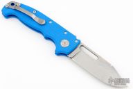This AD20 by Demko Knives features a stonewashed clip point blade with notched thumbrest. The handle has a G-10 frame with a tip up stainless steel clip and "Shark" lock release on the spine. Comes with original box. New From Maker!