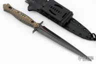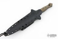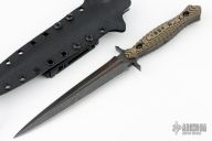 The Stryker dagger  was designed after the Fairbairn-Sykes commando dagger that has become the symbol of our Special Operations units.  We have improved upon the dagger with better materials, using 1/4 inch 80CRV2 steel and canvas micarta for the handle.  With sharpened dual edges, this dagger is great for piercing and slashing.  The blade comes with a black Kydex retention sheath and belt attachment that is MOLLE compatible.