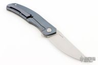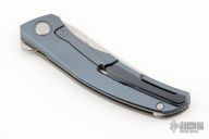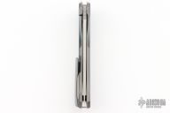 This Quantum Ursus by Shirogorov features a bead blast finished blade with notched thumbrest and flipper. The handle has a blasted and milled titanium frame, polished post, tip up titanium clip with hidden screws. Laser engraved frame. Rides on SRBS, nice detent, lockup and blade seating. Cromax PM blade steel. Comes with original box, papers, and cloth. Excellent condition.