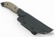 This RAM Street by Busse features a black coated drop point blade, .200" blade stock, 1.088" blade depth, full tang construction with micarta scales and a lanyard hole. Comes with a custom kydex sheath. Excellent condition.
