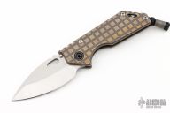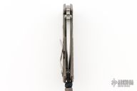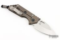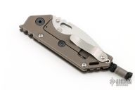 This 3/4 AR by Strider Knives features a stonewashed blade with notched thumbrest and thumbhole. The handle has a MEFP anodized titanium frame with a stonewashed titanium tip up clip. Nice detent, lockup and blade seating. Has some light scuffs and scratches, excellent condition otherwise.