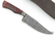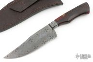 This knife by Maximiliano Pescie features a Mosaic Damascus blade with integral bolsters, .144" blade stock and 1.462" blade depth, hidden tang construction. The handle has a Stabilized Birch wood grip. Comes with a black leather sheath and COA. New from maker at the 2024 Blade Show.