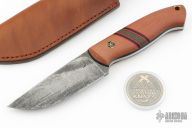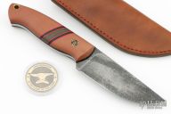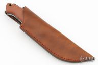 This Wanderer by Trollsky Custom Knives features an acid stonewashed blade with .176" blade stock and 1.377" blade depth, full tang construction. The handle has vintage linen micarta scales with black liners, custom mosaic pin and a lanyard hole. Comes with a brown leather sheath. New from maker at the 2024 Blade Show.