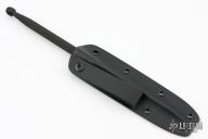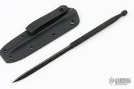 The Devil Dart from Pat Crawford is an all steel 440C sleeve knife. It is designed and refined after seeing the OSS sleeve dagger from World War II. The blade is triangle shaped for strength and easy penetration. The handle is knurled for a sure grip. Each dart is individually hand ground and bead blasted for the highest quality. Tungsten DLC coated. Includes a kydex sheath with clip. Comes with ball chain. New from maker at the 2024 Blade Show.