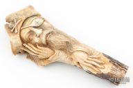 Hand Carved Stag. Can be set as a knife handle, or made into a display piece. 1" at the base, 1.25" at the tail, 2.625" at its widest. Very nice work, excellent condition.