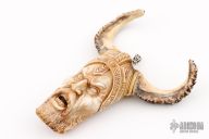 Hand Carved Stag pendant. 4" wide, 5" tall, 1.375" thick. Necklace bail attached. Very nice work, excellent condition.