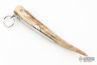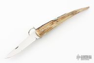 This Ring folder has a mirror polished blade and nice looking stag handle. Stainless steel locking mechanism on the handle spine. Brand new from maker at the 2024 Blade Show.