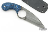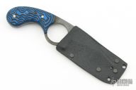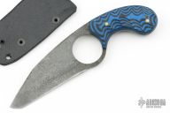 This custom tanto La Griffe by Fred Perrin features a tanto chisel ground blade with hamon, .123" blade stock and 1.252" blade depth, full tang construction. The handle has black/blue G-10 scales with brass pins. Comes with a kydex sheath. New from maker at the 2024 Blade Show.