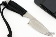The Backpacker model from White River Knives is a compact fixed blade with a wide range of competencies that span camping, hiking, survival situations, and everyday carry. This model has a black 550 paracord wrapped handle and includes a Kydex sheath with belt loop attachment and a paracord tie for neck carry.
