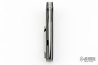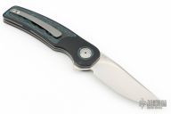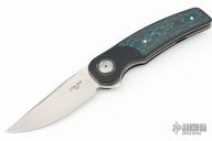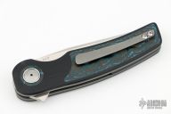 This Model JB1L features a satin finished drop point blade with a nothced thumbrest and flipper tab.  The handle has G10 scales with artic storm fat carbon inlays over bead blasted titanium liners and a matching tip up pocket clip.  Black G10 backspacer.  Includes a padded case and COA.  Excellent Condition.