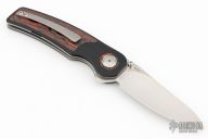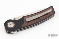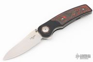 This Model JB1L features a satin finished drop point blade with a nothced thumbrest and flipper tab.  The handle has G10 scales with Mars valley fat carbon inlays over bead blasted titanium liners and a matching tip up pocket clip.  Black G10 backspacer.  Includes a padded case and COA.  Excellent Condition.