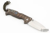 This Custom AD10 by Andrew Demko features a satin finished drop point blade with dual thumbstuds and a notched thumbrest. The handle has snakeskin canvas micarta scales over a bead blasted titanium frame and a titanium tip up clip. Nice lockup and blade seating. Comes with a zippered case. Has a few light scratches, otherwise excellent condition.