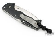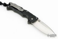 This AD10 lockback by Andrew Demko features a satin finished drop point blade with dual thumbstuds. The handle has black G-10 scales over a titanium frame and a titanium tip up clip. Very strong lockup. Includes a padded zippered case. Has some scratches, otherwise excellent condition.