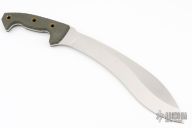 This Rotten Banana by Andrew Demko features a satin finished blade with .187" blade stock and 2.615" blade depth, full tang construction. The ahndle has textured green G-10 scales. Has a couple light scratches, otherwise excellent condition.