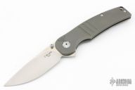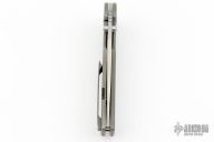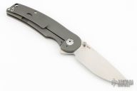 This knife features a satin finished drop point blade with a notched thumbrest and flipper tab. Dual thumbstuds. The handle has a bead blasted titanium frame with a matching tip-up pocket clip. Includes a case and COA. New from Maker!