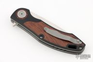 This H4 Mini Linerlock Flipper by Riaan Manser features a satin finished drop point blade with a notched thumb ramp and flipper tab.  The handle has G10 scales, wood inlays and bead blasted titanium liners with a matching tip up pocket clip.  Includes a padded case and COA.  Excellent Condition.