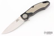 This H4 Mini Linerlock Flipper by Riaan Manser features a satin finished drop point blade with a notched thumbrest and flipper tab.  The handle has G10 scales, G10 inlays and bead blasted titanium liners with a matching tip up pocket clip.  Pink G10 liners.  Includes a padded case and COA.  Excellent Condition.