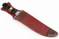 This knife by Coyote Cutlery features a satin finished blade with false top edge, .167" blade stock and 1.390" blade depth, full tang construction. The handle has a stainless steel guard and bolsters, buffalo horn scales. Comes with a brown leather sheath. Has scratches, otherwise good condition.