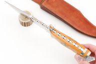 "I've been building knives full time since 1981. I started out making my first knife on the kitchen table with a vise and some files in 1978 at the age of 15. Ever since then it's been a passion and a journey to build a better knife than the last. I primarily make pocket knives with a lockback or front lock mechanism. I have made many other types of knives and am always willing to try something new. I'm most widely known for carving seashell patterns in the bolsters and handle material called scalloping. This type of carving has become a trademark of my work and makes my knives easily recognizable to collectors who have heard of me. I won 11 Blade show awards in 7 consecutive years from 2002 to 2008 including 2 best folder awards, one best folder of the year, 3 best handle designs. I ended competing at the Blade show in 2008 with wining best fixed blade which won best of show. I have also won best folder at the Plaza Invitational and the Chicago show."
