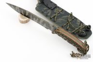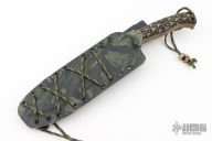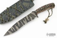 This Z Special Bolo by Kraken Tactical features a custom multicam blade with notched thumbrest, .185" blade stock and 1.801" blade depth, full tang construction. The handle has custom OD green scales with orange liners. Comes with a kydex sheath, and COA. New from maker.