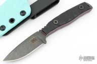 This Compact Field Skinner by Kraken Tactical features a stonewashed blade with notched thumbrest, .173" blade stock and .918" blade depth, full tang construction. The handle has black G-10 scales with pink liners. Comes with a kydex sheath, COA and original box. New from maker.