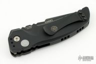 This EX-A01 by Hogue Knives is an Allen Elishewitz design, it features a black tanto partially serrated 154CM blade with notched thumbrest. The handle is black aluminum, tip up or down reversible black stainless steel clip. Has safety. Comes with Hogue box and papers. New condition.