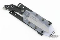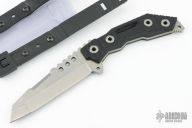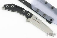This QTR-7 by Quartermaster Knives features a stonewashed blade with notched thumbrest, .197" blade stock and 1.492" blade depth, full tang construction. The handle has black G-10 scales. Comes with a clear kydex sheath, original box and papers. Excellent condition. #272 of 300