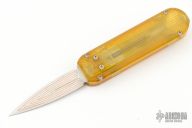 This 007 Auto by ARS and Darriel Caston features a San Mai Damascus double edged blade. The handle is ultem with a tip up stainless steel clip. Excellent condition.