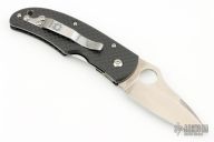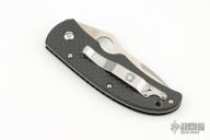 Great little linerlock designed by Michael Walker, produced by Spyderco. Satin blade and carbon fiber scales. Japan's version of the ultra-performance powderized steels dominating our knife industry today is ZDP-189. With 3-percent carbon and an epic 20-percent chromium, the hollow-ground blade becomes part of an elite fraternity of exotic blade steels just beginning to be fully utilized and appreciated by knife users. Tip up carry clip. Strong lockup; nice detent and seating. Discontinued model. Includes the original box and papers. Has some patina, otherwise excellent condition.